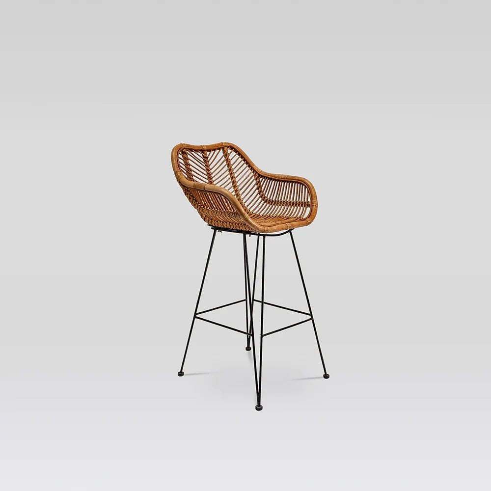 A sleek combination of iron and rattan. Available in black and natural, this product combines style and functionality effortlessly.