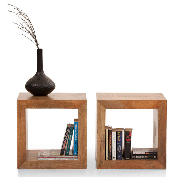Bold and classic shape. Made from premium mango wood; the exquisite design offers a serious impact. Geometric structure works on the cubist concept to provide ample_enclosed_storage that works on whether they're used bedside or a side table in the living room packed to the edge like a library.