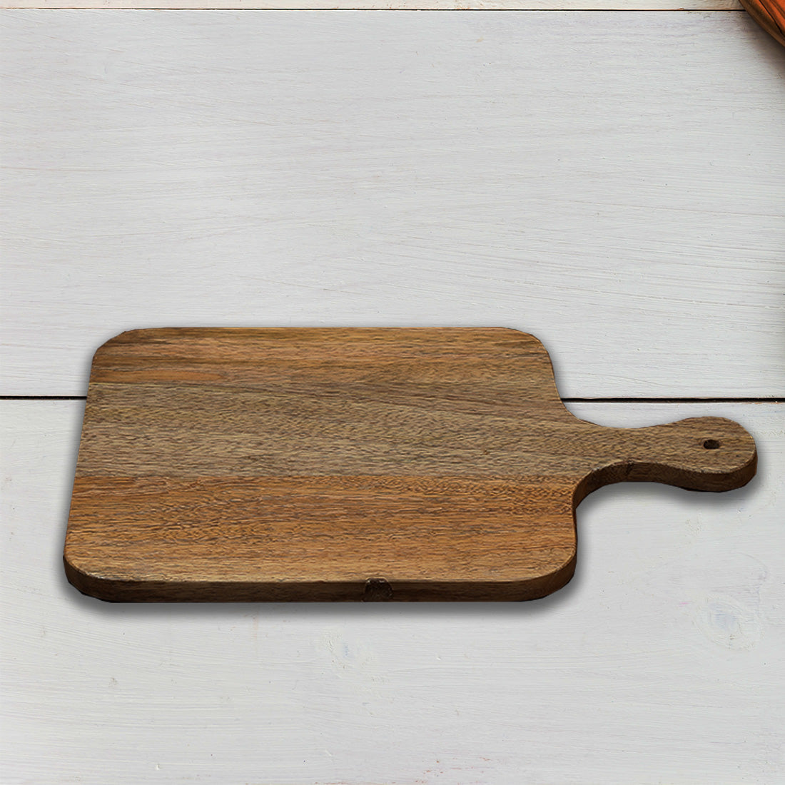 Your very friendly-looking chopping board. Crafted with solid mango wood with a thickness that makes it heavy-duty.