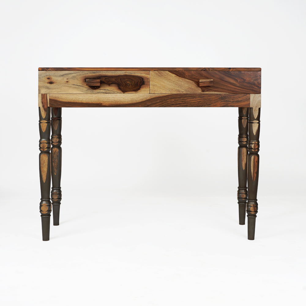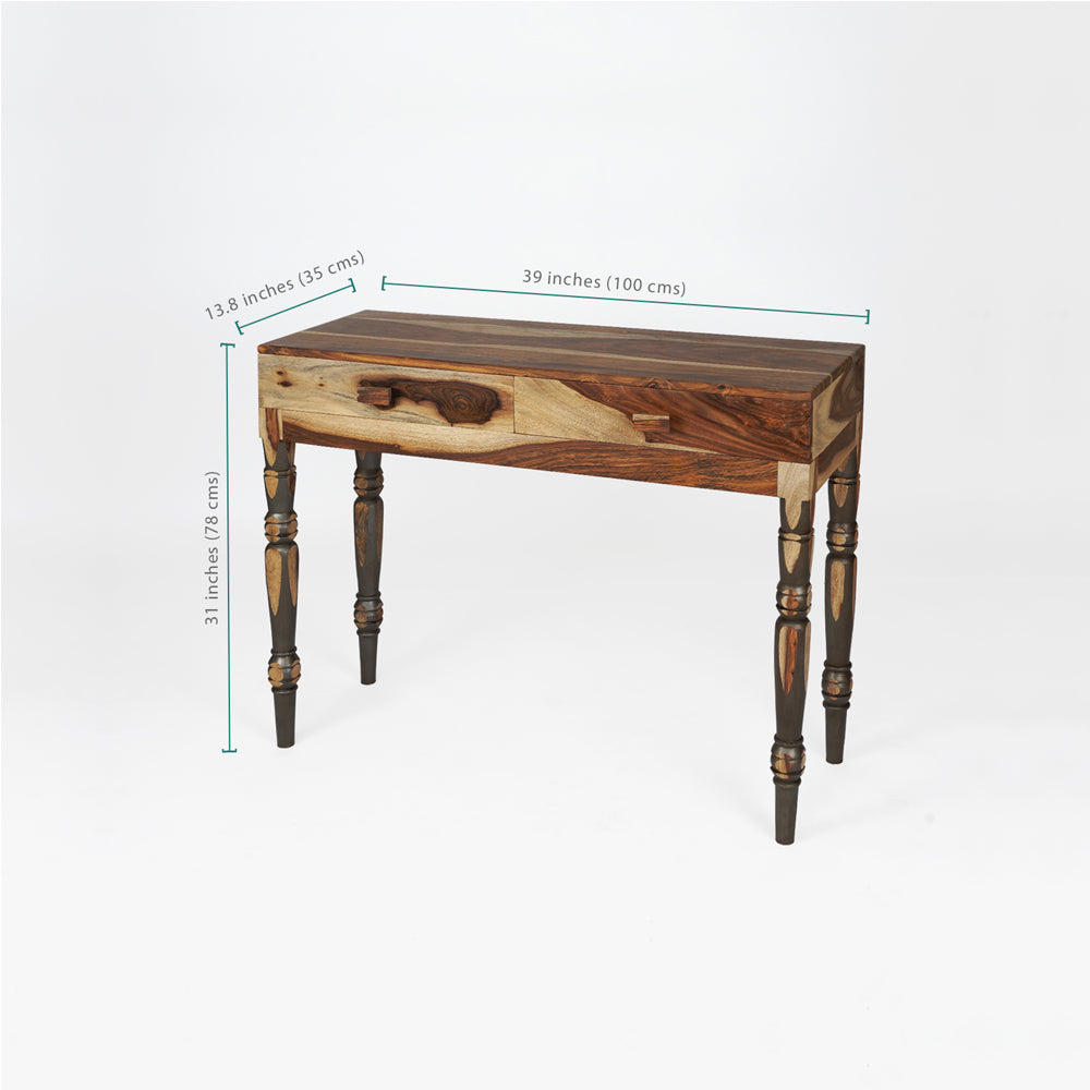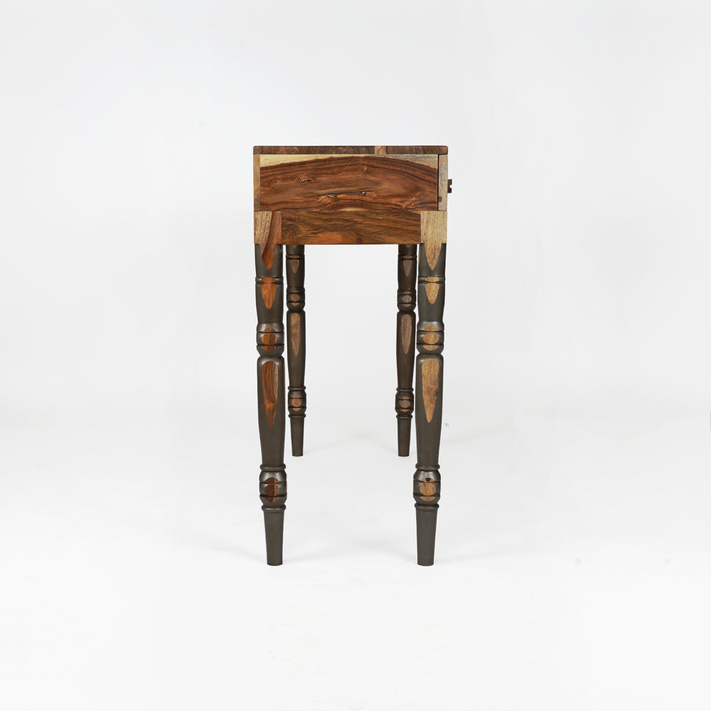 Place it in your Hallway or place it in any other room of the house, the Supine Console table is sure to bring order and elegance to any area of the house. Keep your Keys on the top and all your other reinforcements in the two spacious drawers below. legs have an antique metal finish with sliced faces that give a glimpse of wood below and create beautiful new patterns. This piece is designed with knockdown legs.