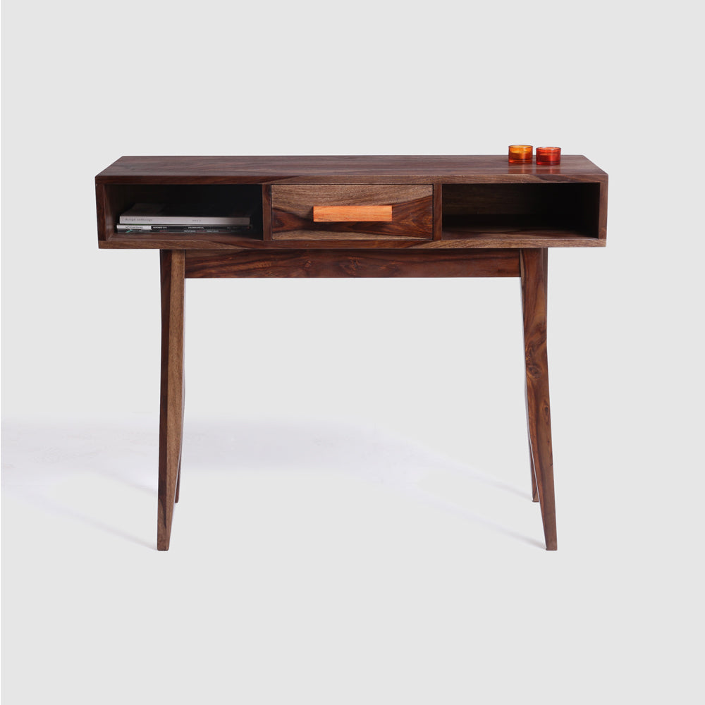 Bring order along with a modern touch to your hallway with the Idyllic Console Table. With two shelves and a drawer to store your things, it still leaves you with the tabletop to put all your Photo frames and keep useful things handy