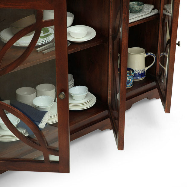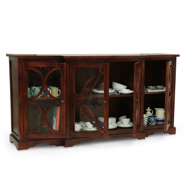 Bold meets involved. Crafted from premium wood, a four-door cabinet with clean curved lines does it all. The cabinets are large enough to use it in your dining area or living room to hold anything from crockery, to table linen and ceramics. Fremont lets you flaunt the cutlery in a home style.