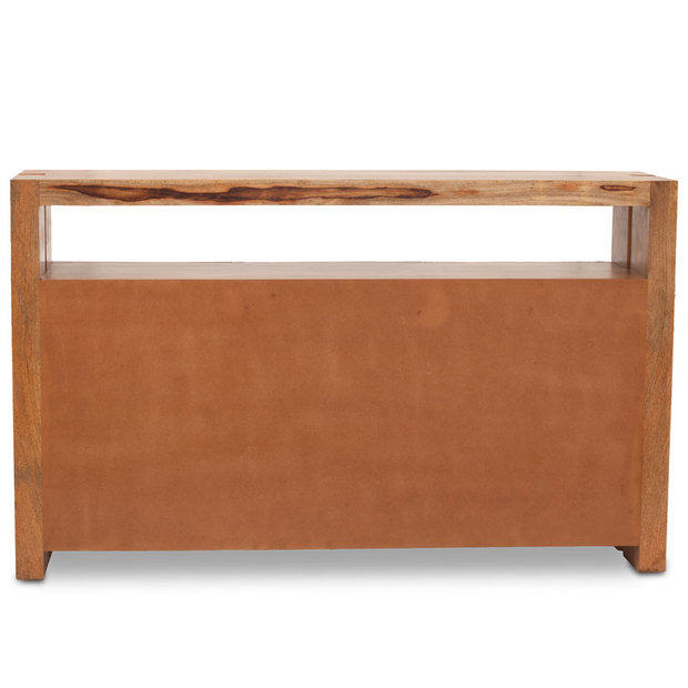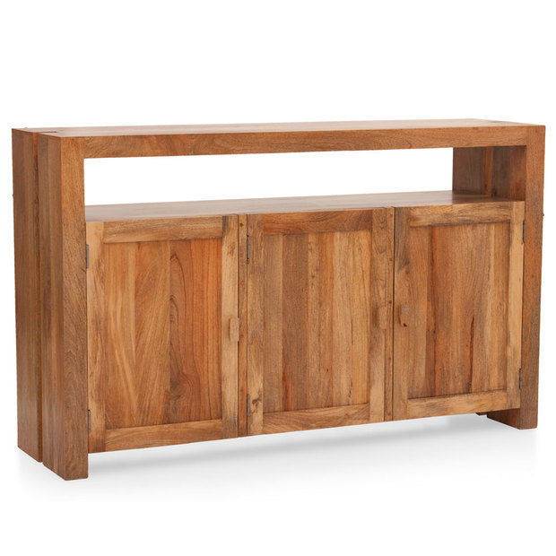 Plenty of space style crafted from solid mango wood, this sideboard has three closed cabinets and one wide open shelve. Cabinet adjustable shelves helps you organize all the knick - Knacks with a diverse range of crockery and cutlery. The spacious open shelve helps you display coffee mugs to stack of novels and the beautiful walnut color does it all in the living room or the dining area.Thearmchair team will install the product at the time of delivery.