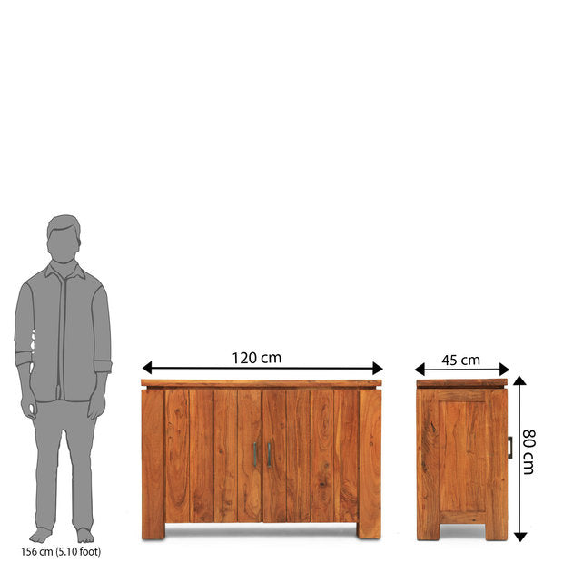 Modeled in acacia wood, keeping in mind the need for robustness and minimalism, turin sideboard is an imperative to your home. Sturdy design and two large cabinets along with a broad surface top make its high utility. Light wooden finish highlights the wood and its modest design is apt for any kind of interior.