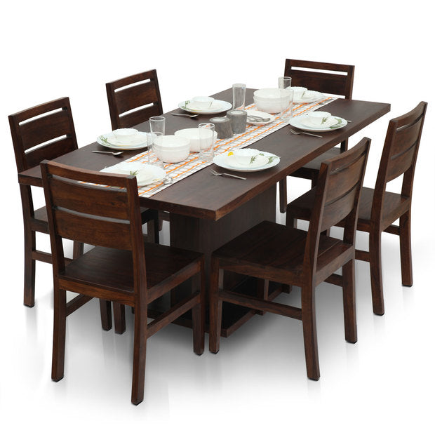 Bocado-Sorano 6 Seater Dining Set is not just a way by which you keep the centerpiece of the dining room at a nodal point, but you also value the goodness of family time in the center. This is a solid wood dining table so it is sure to define the decor/interior in a superior way, serve dining needs, and withstands with the passage of time.
