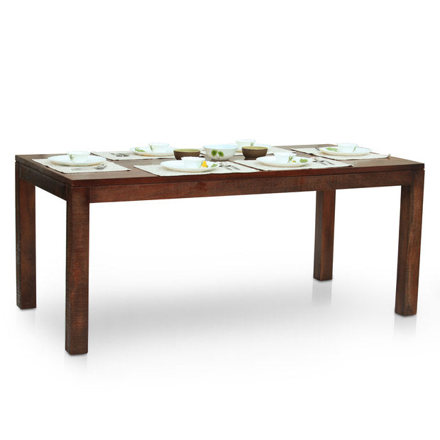 Our modern Gresham Dining Table is built on clean lines with sturdy mango smooth surface top. With its authentic wood grain peeking through the natural and walnut soft finish.
