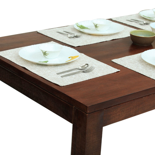 Our modern Gresham Dining Table is built on clean lines with sturdy mangosmooth surface top. With its authentic wood grain peeking through the natural and walnut soft finish.