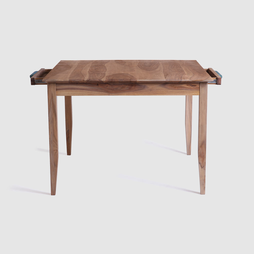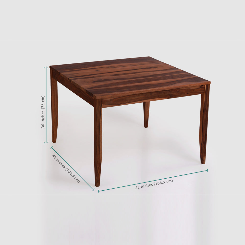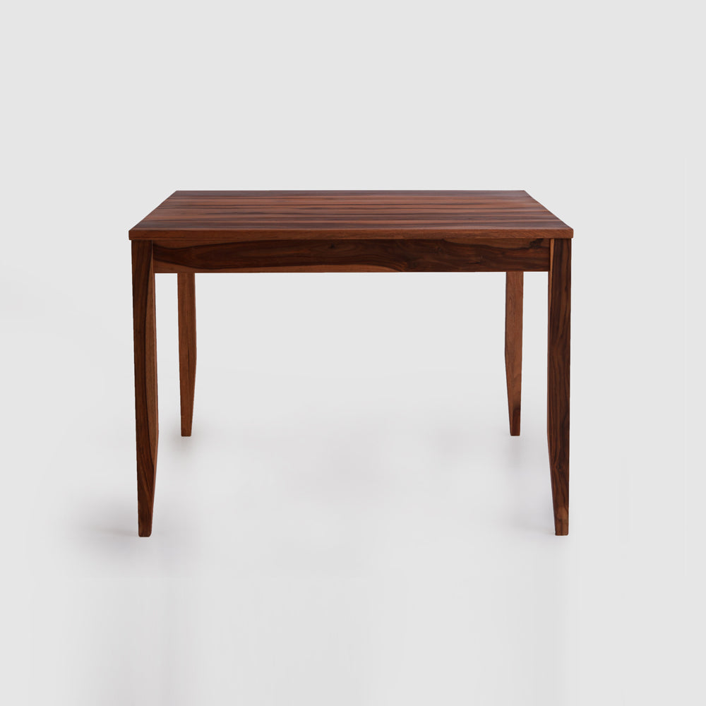 The Idyllic Dining Table with Walnut Chairs adds just a little bit of spice to your home with its hues and deep dark grains that boast of the gloriousness of solid Sheesham wood. The size of the table is just right for four people to sit together comfortably and enjoy conversations over a meal.