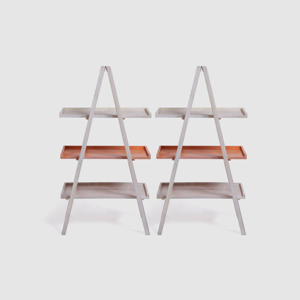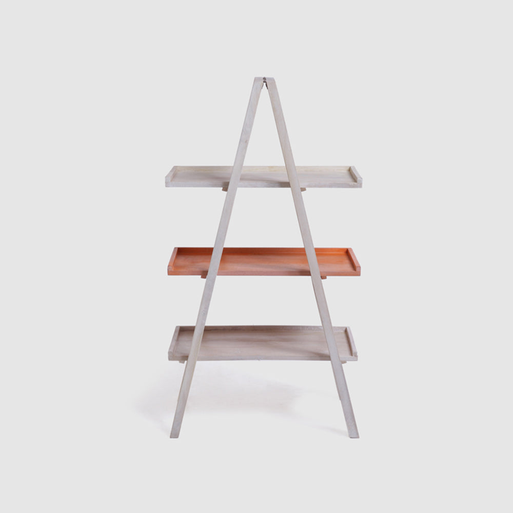 Wooden Floor Shelf | Bookshelf — Tier (Orange ) If you need a shelf that is so easy to take apart that you can put it in a different corner of the house every single day, you do not need to look any further. The Tier shelf is a collapsible shelfwith three fun trays to keep whatever you please on display. The trays keep the frame locked in place and give you a blank canvas to explore and go crazy with your decor ideas.