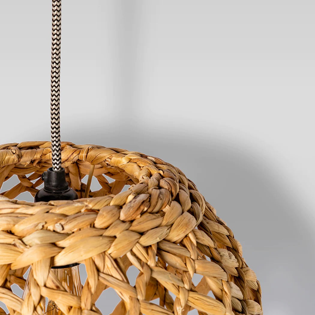 Locus — artfully woven from water hyacinth, diffuses light with a subtle, luxurious allure. Elevate your decor with this eco-conscious and stylish lighting accessory.