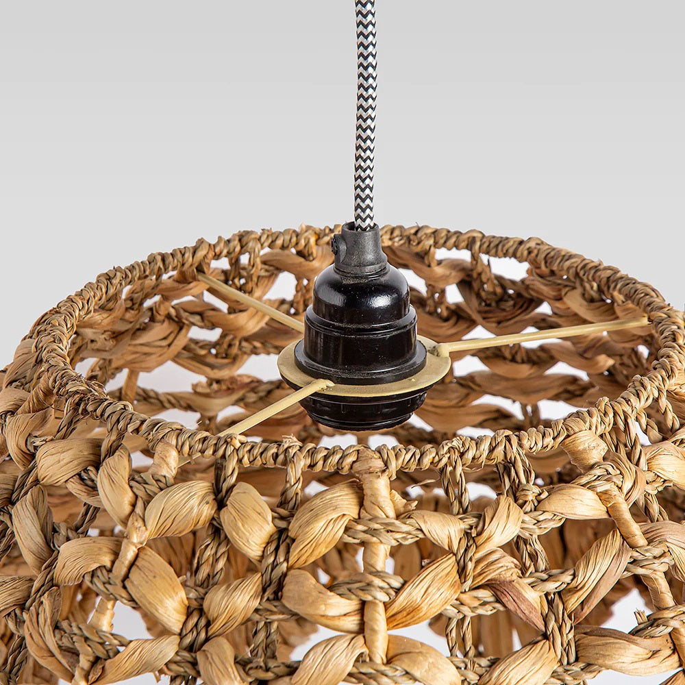 Lamp Manifest - water hyacinth — The Manifest Lampshade is the perfect way to add a glimpse of nature to your home. Made from seagrass and water hyacinth, this lampshade is not only stylish but also eco-friendly. The natural materials allow for a soft, warm light that will create a relaxing atmosphere in any room.