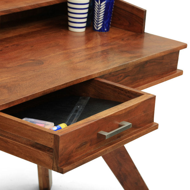 Spacious with a wooden slab, it gives ample room to keep your books, stationery, and other accessories. Broad wooden legs, modeled with solid acacia, are well interlocked providing a designer look and sturdy support. With a well-built design that is resonated with the ultra-modern frame, SORANO study table is no less than en pointe.