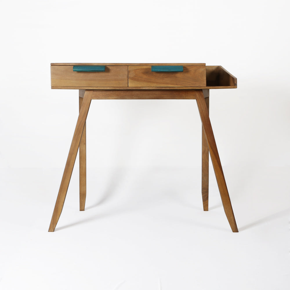 The elegant and sleek structure and the trademark blue handles make it a beautiful addition to your homes. Buy it along with the Idyllic Writing Chair and work in style. This piece is designed with knockdown legs. Please read Delivery Information for more details.