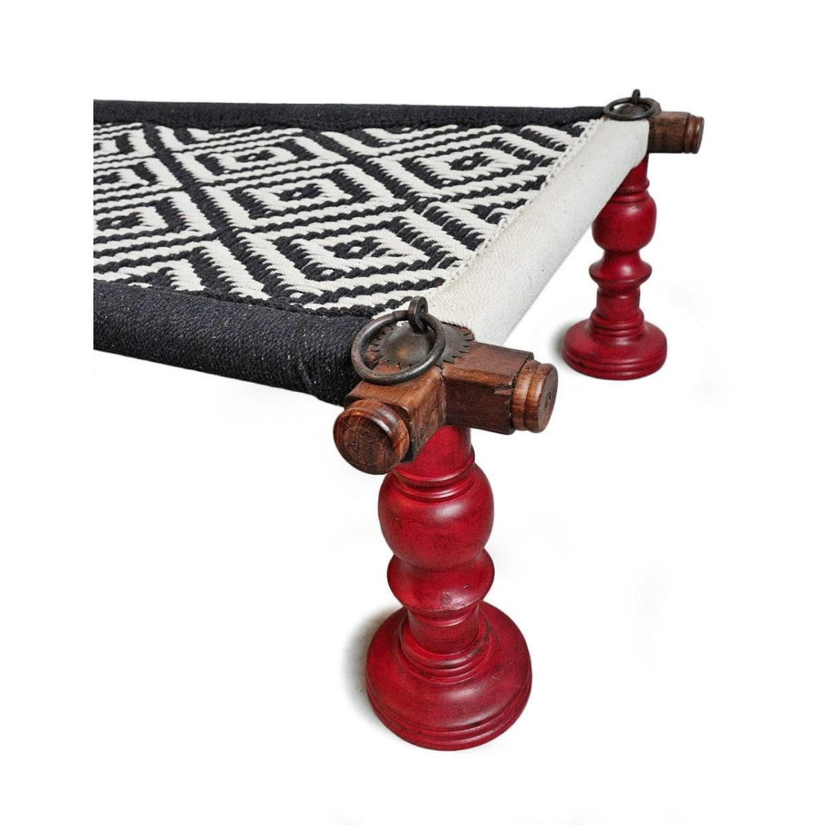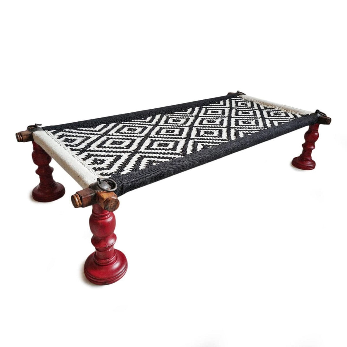 Crafted of strong acacia wood and knitted of silky soft cotton with hand for days in days out by local artisans of Rajasthan. Further enhanced with squat-turned legs & rings at the 4 edges to hang and convert into transitional looking swing at ease.