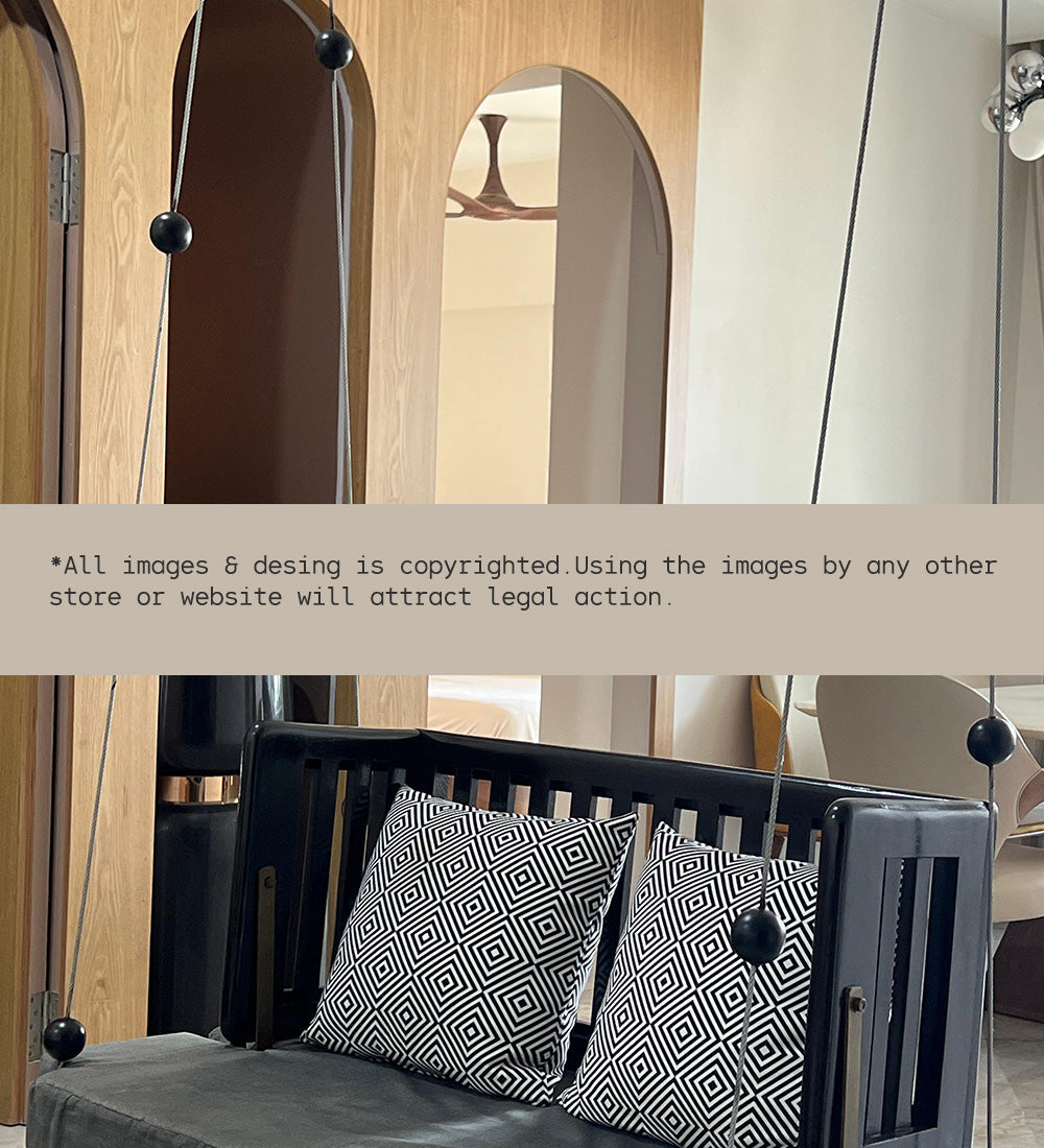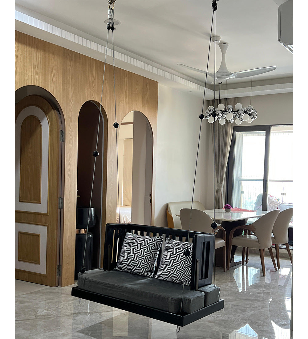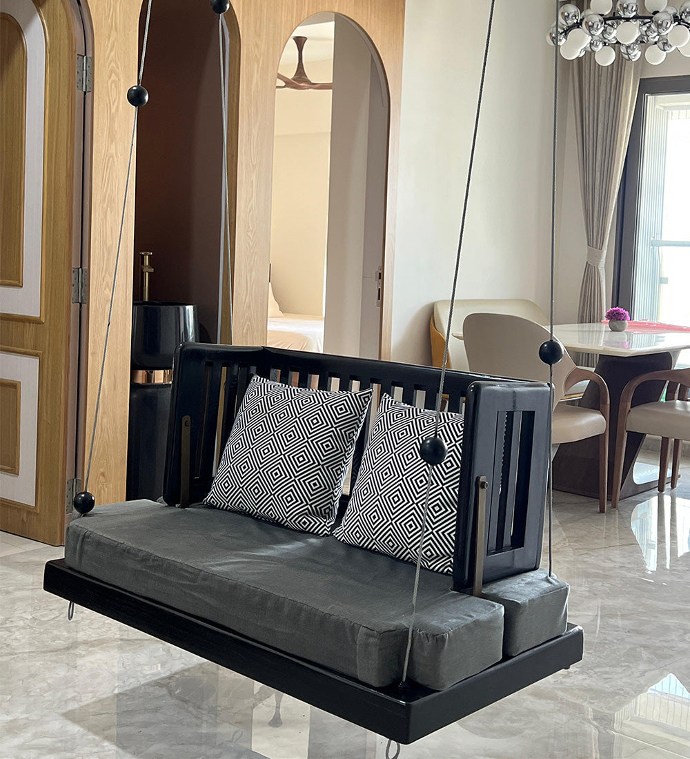 Ready to add a dash of whimsy and a whole lot of comfort to your home? Meet ourSheesham Wood Swing—polished in a sophisticated black finish and designed for those who love to lounge in style!