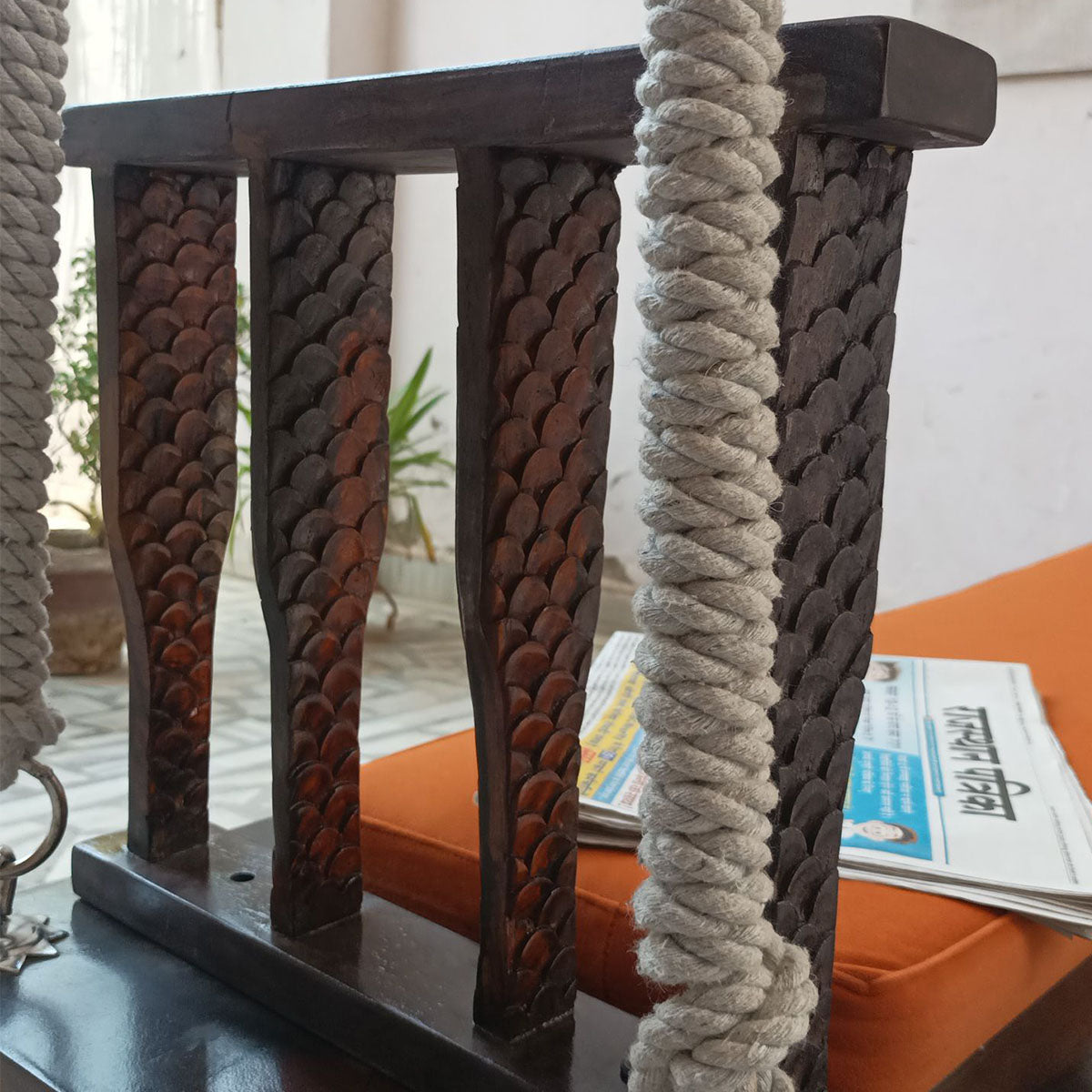 Crafted of solid Sheesham wood & simplicity in mind Kalpik is a go-to swing for indoor or outdoor Verandah. To add zest to the design armrest is adorned with beautiful hand carving. Customers love the simple & organic structure of this swing. Handmade by matured craftsmen with assorted and treated timber - Sheesham wood, hand-waxed premium polish.