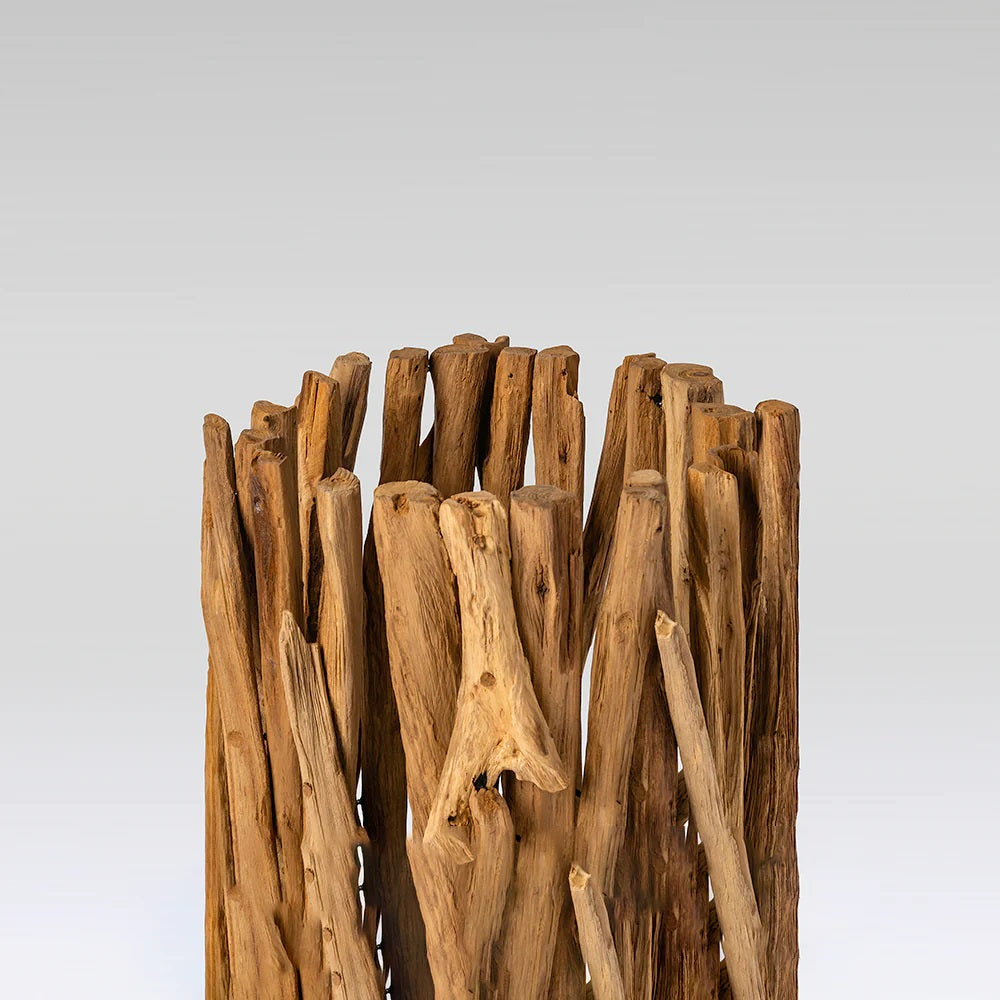 Enhance your surroundings with the Hope Table Lamp. Made from recycled teak wood, it radiates a warm, inviting glow, creating a cozy atmosphere.