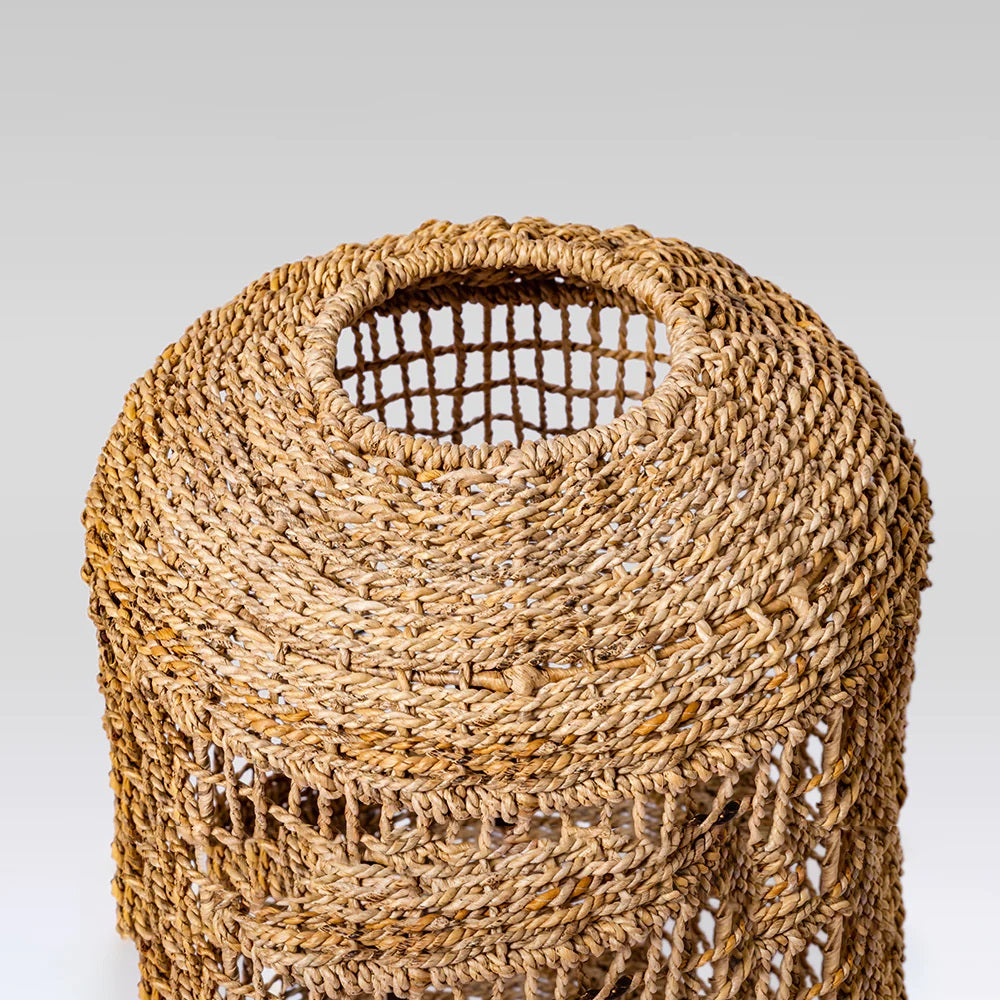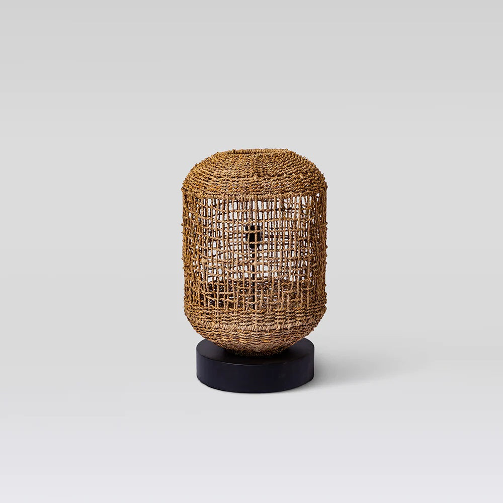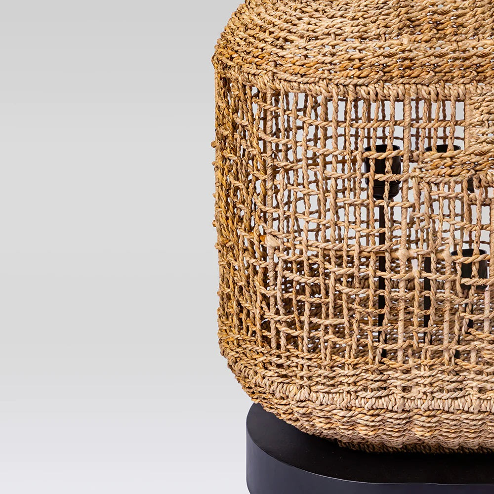 Tour table lamp— Illuminate your space with a mesmerizing glow. Handwoven using banana rope, this lamp brings a touch of nature's charm to your tabletop.