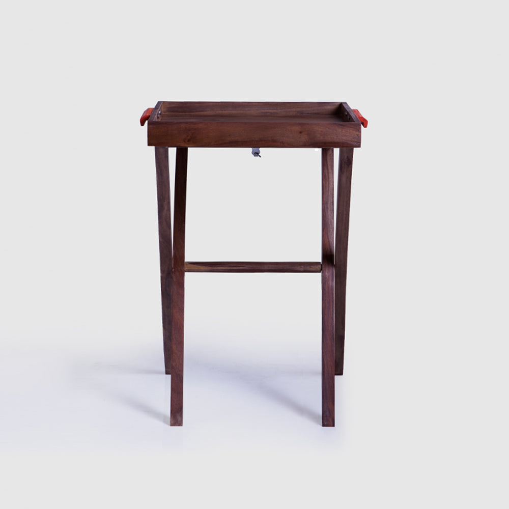 This solid wood Sheesham table is extremely useful to have around. A well-sized tray with striking blue handles rests on its scissor legs. It is an extremely light and portable product that can be used in different areas quite conveniently.