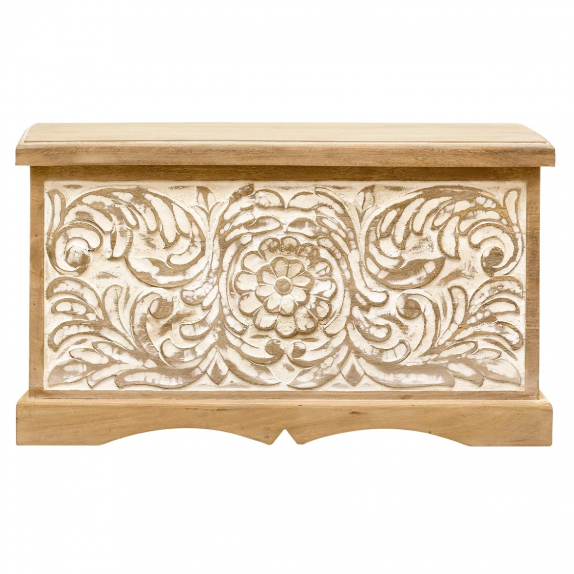 Its antique look Lineage value with the hand-carved, hand-waxed with premium polishing by matured craftsmen. This blanket box is crafted of solid mango wood.
