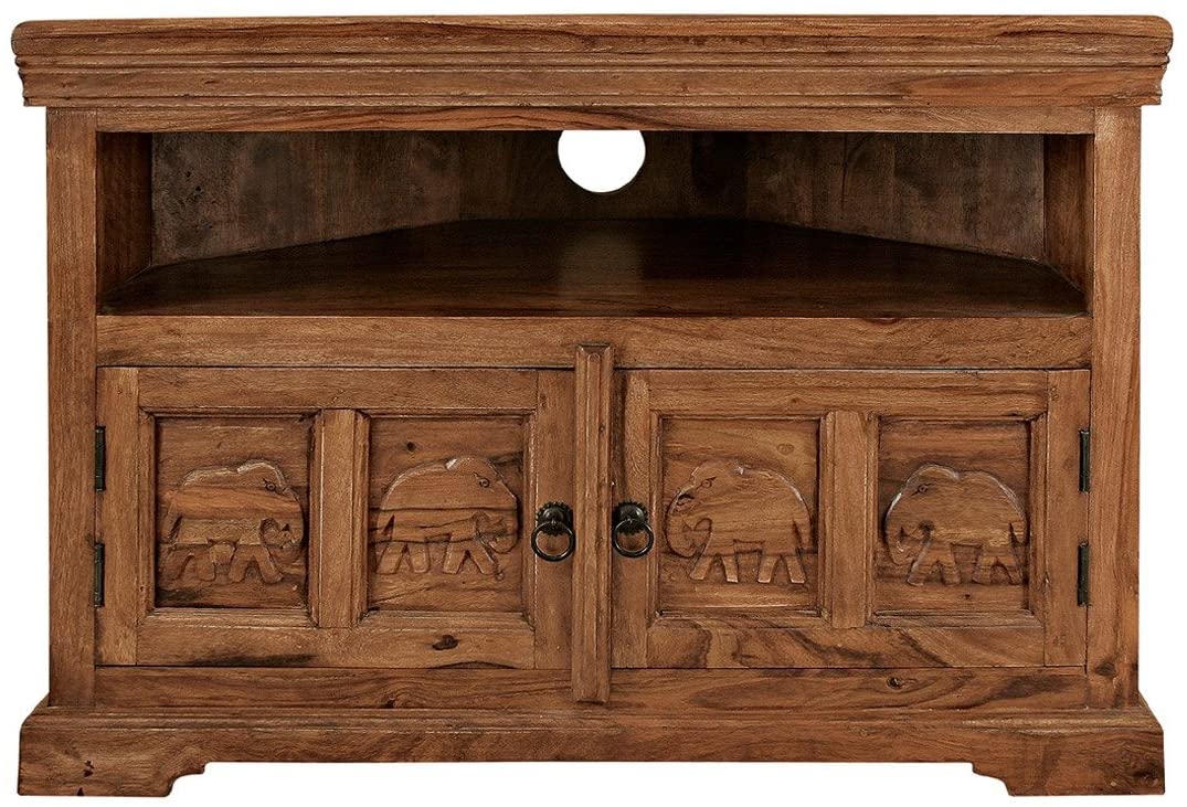 Haathi - invokes Royal in you! Isn`t it. This wooden CORNER TV unit is a part of our finest Haathi Collection. Made of 100% Sheesham Wood (Indian Rosewood). Premium Polishing and hand-waxed finish.