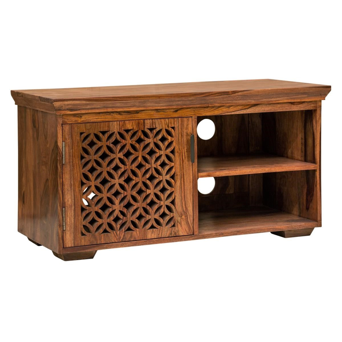 Camellia! The fretboard-carved panels, natural grains, and solid wood the combination that proved so good for us and lot of our customers. Crafted by matured craftsmen with assorted Solid wood and premium polishing. Cabinet for media, magazines, and more stuff side of unit 2 equal compartment with a removable shelf in case you need to accommodate something big.