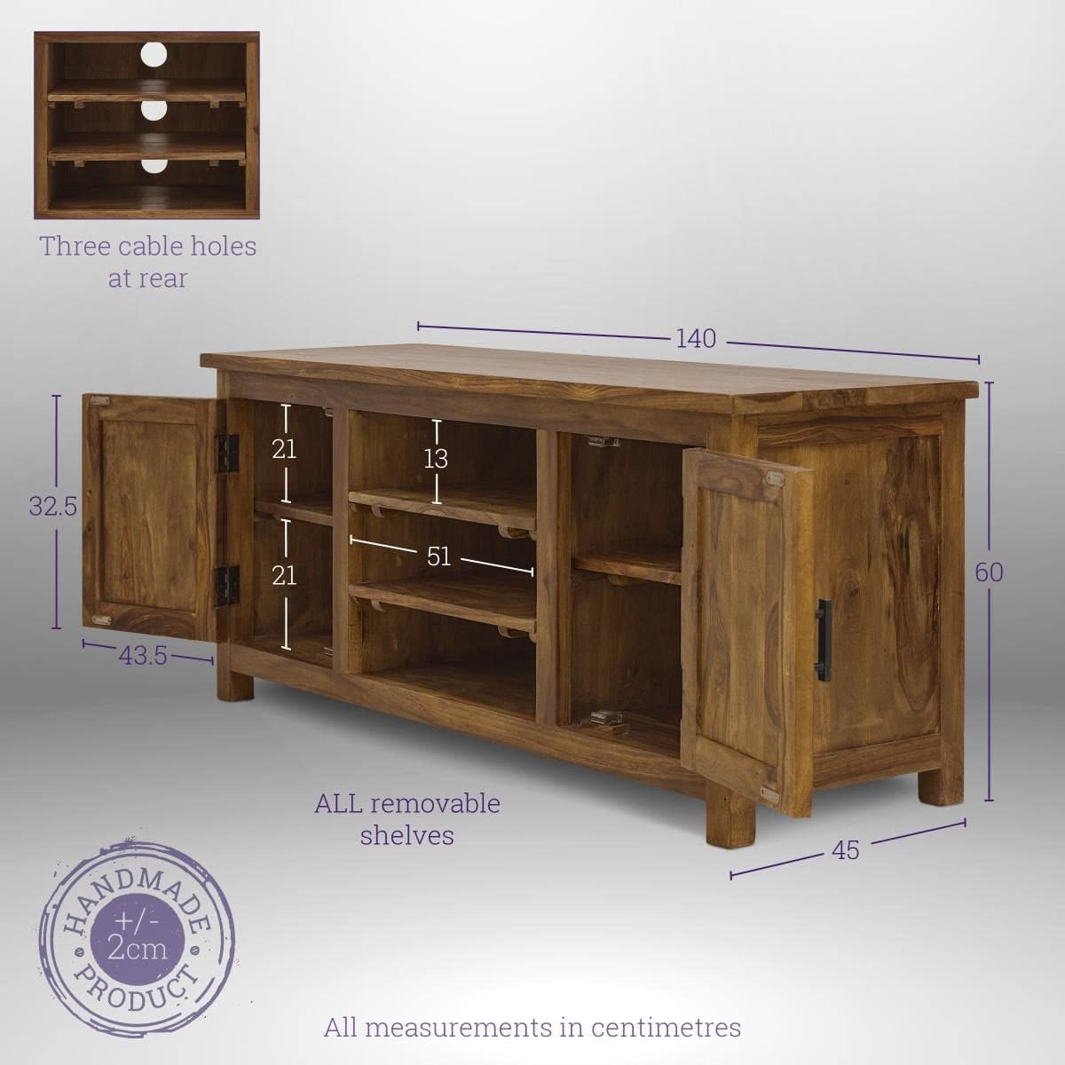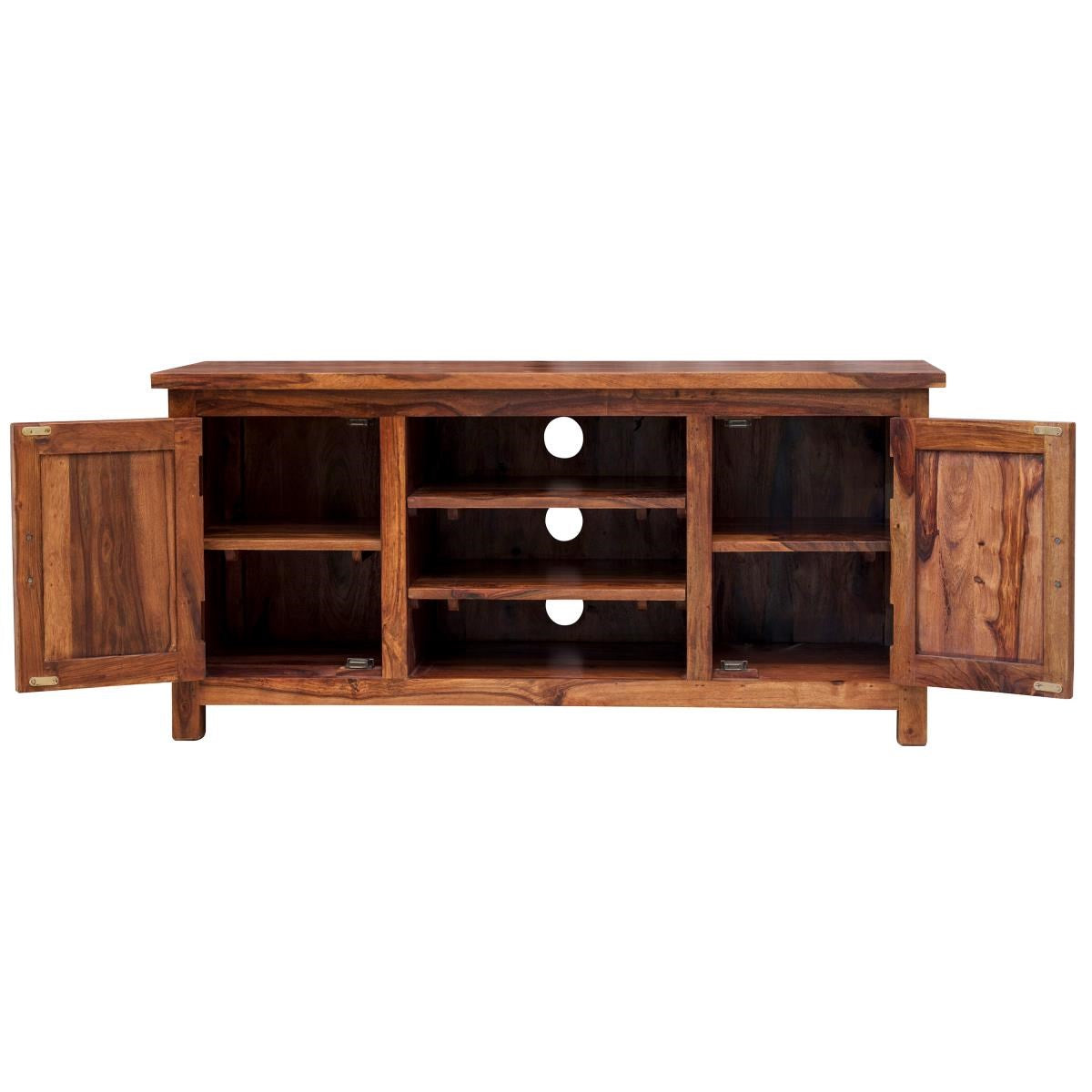 Stance! Natural grains and simple design. Crafted by matured craftsmen with assorted Solid wood and premium polishing this TV cabinet is a part of Gladiolus Collection. Made of 100% Sheesham Wood (Indian Rosewood).