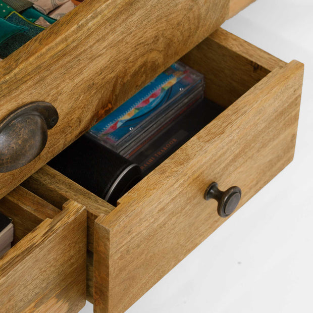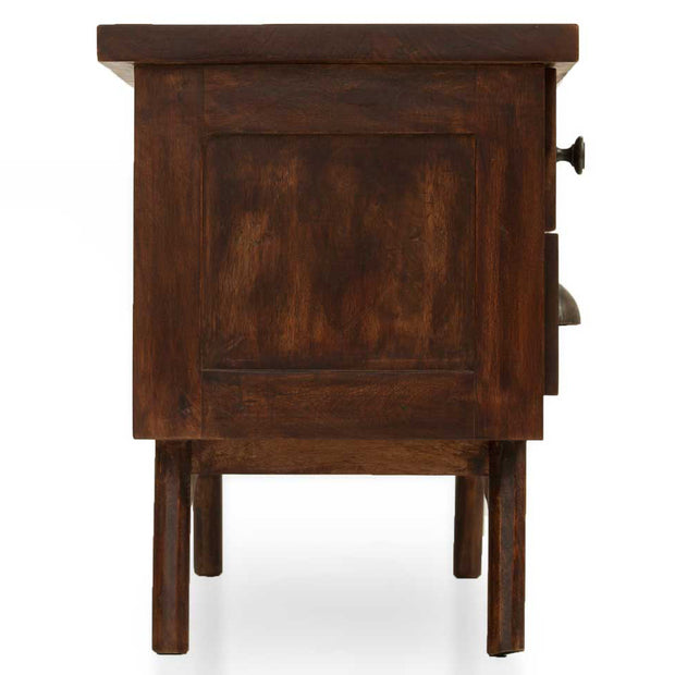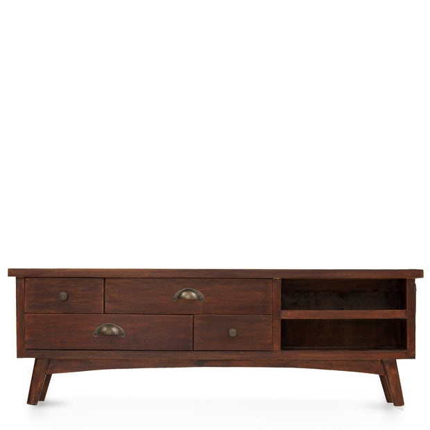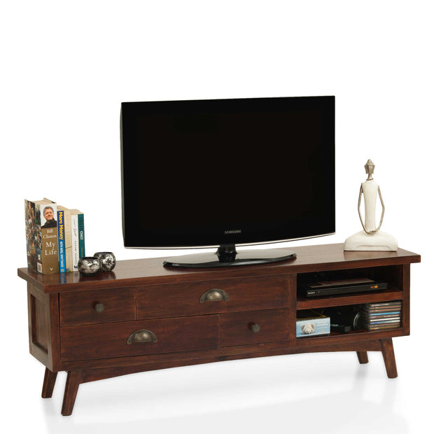 The Prague Media Unit brings quirk to life with its details. It has a raw look and feel and is carved out of solid mango wood.