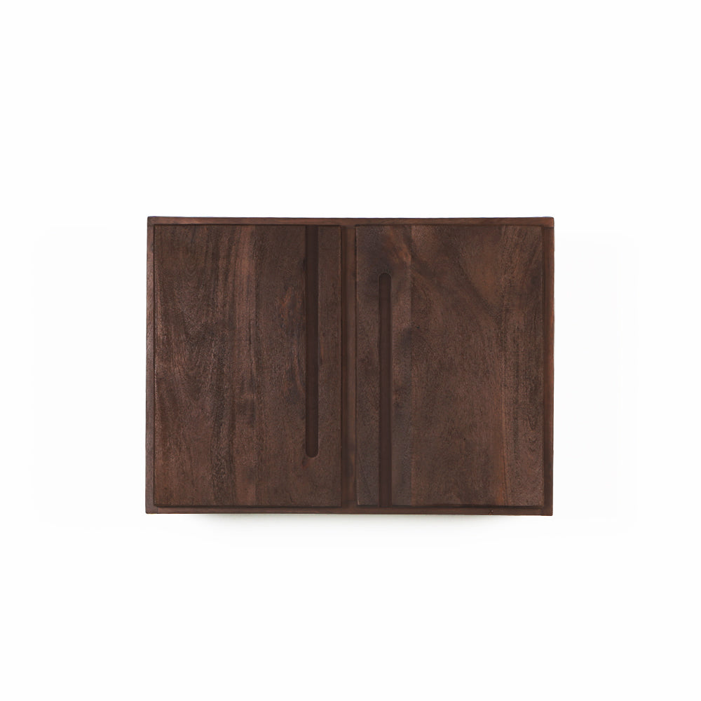 The trademark angled SOLITUDE grooves on the doors helps open it without adding any extra hardware to the product. The front doors have been sandblasted to highlight the natural grain structure and to create a subtle contrast to the rest of the body.