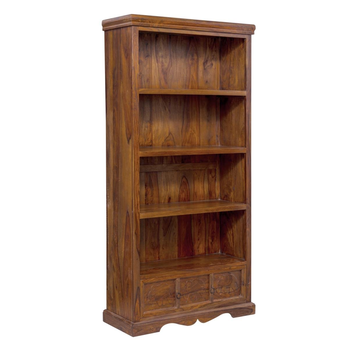 Wooden Bookcase made of 100% Hardwood - Sheesham Wood Hand-Waxed Finish Delivered Fully Assembled W90x H150x D40 cm