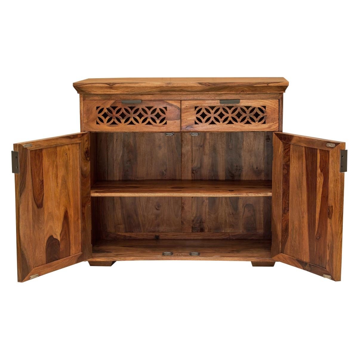 Wooden Sideboard part of our Camellia Collection. Fret-board carved Mesh makes this range elegant. Made of 100% Sheesham Wood...